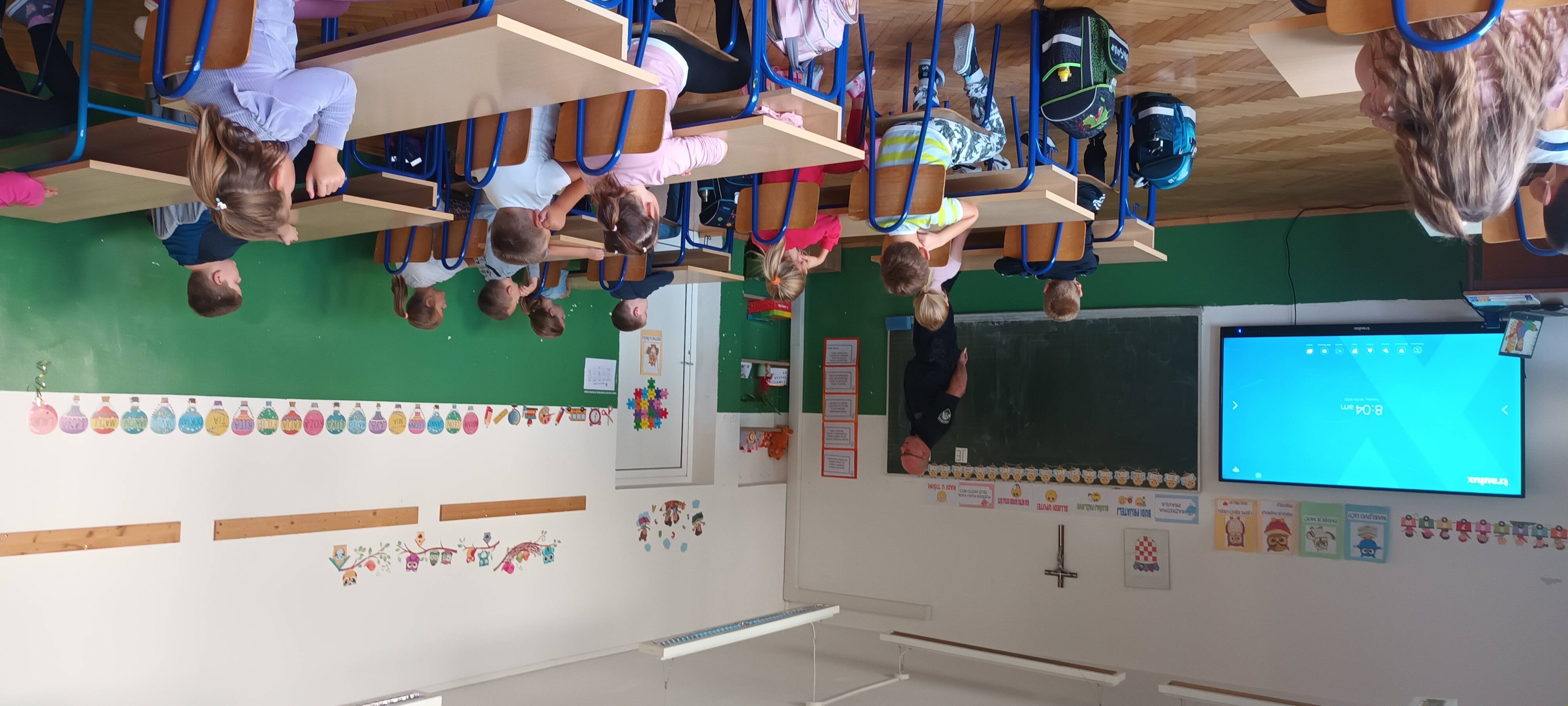 U utorak, 16. rujna 2025.godine, učenike prvih razreda Matične škole Klanjec i Područne škole Lučelnica posjetili su policijski službenici Policijske postaje Klanjec. Posjet je bio u sklopu edukativne akcije koja se provodi početkom svake nastavne godine u prvim razredima naših škola. Policijski službenici su razgovarali s učenicima o njihovom putu od kuće do škole i opasnostima na koje nailaze kod prelaska ceste, vožnje javnim prijevozom i samim sudjelovanjem u prometu. Prvašići su naučili da su i oni sudionici u prometu te kako se ponašati u prometu, kako se sigurno kretati kolnikom, kako pravilno prelaziti cestu, što znači koja boja na semaforu i sl. Policajci su učenicima objasnili važnost nošenja kacige i štitnika dok voze bicikl. Učenici su pažljivo slušali i aktivno se isticali postavljajući brojna pitanja. Predavanje je bilo zanimljivo i poučno. Za fotografije kliknite na više.